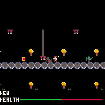The lizards have taken over Castle Redskell and it's up to you to get rid of the little green menaces. Taking a queue from my beloved childhood game, Rastan, Jumpy Jumpy Sword Man is a single player side-scrolling hack n' slash made in PICO-8. It's like Super Mario, only with a sword. Press Z to jump and X to slash with your sword. To come down on your enemies' heads Rastan style press jump (Z), down, and then sword (X). Take that! You just owned that dude. Don't forget to duck by pressing down while you're on the ground! You can still slash with your sword while ducking damage, just like you could in Rastan, a game we all know and love if you're above the age of 45. With four levels and two bosses this game provides literally minutes of entertainment.